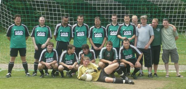 hinten von links: Kai Goebel, Denis Grobe, Ingo Zenker, Amer Bajrovic, Mario Terron, Dennis Gebhardt, Bobby, Torsten Sievers, Trainer Jörn Püttmann, Betreuer Frank Hentschel, Trainer Lars Hinz