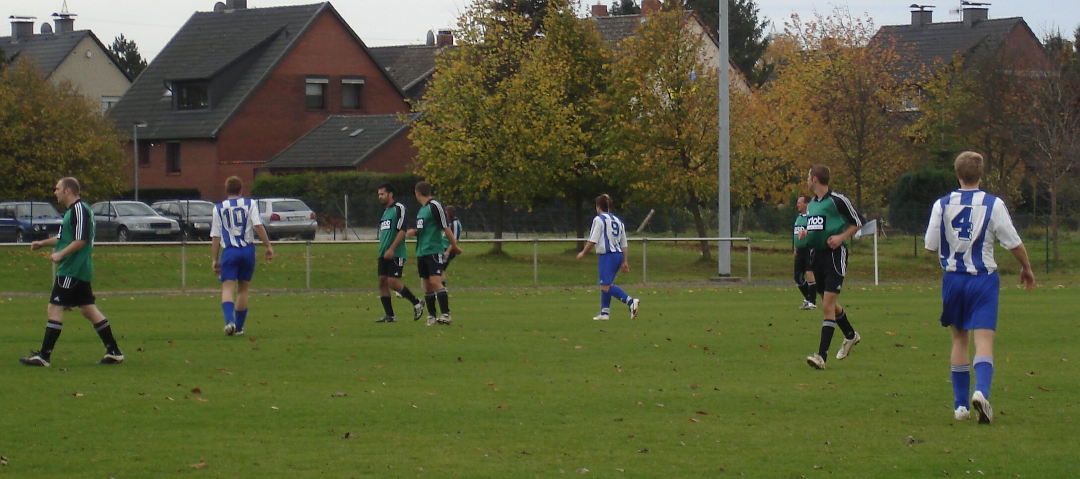 Der Schiedsrichter pfiff die Partie um 13.55 Uhr an. Bereits nach 5 Minuten verletzte sich Markus Hähnle in einen Zweikampf so schwer, dass er nicht weiter spielen konnte. Nun standen der Mannschaft wieder genau 11 Spieler zur Verfügung. In der 10. Spielminute erzielte Sonnenberg die 1:0 Führung. Vechelde stand sehr tief und lies die Sonnenberger erst einmal kommen. Die Abwehr stand durch Pee Wee gut organisiert und die komplette Mannschaft wusste durch Einsatz und Kampf zu gefallen. Sonnenberg setzte Arminia in der ersten Halbzeit stark unter Druck und erzielte in der 33. Min das 2:0. Weitere zahlreiche Angriffe der Sonnenberger wurden von den Vecheldern ein ums andere Mal abgefangen und unterbunden. Man war von Vechelder Seite mit dem 2:0 Halbzeitstand zufrieden und nahm sich als Ziel für die Zweite Hälfte vor, diese tadellose kämpferische Einstellung genauso bis zum Ende des Spiels durchzuziehen und Sonnenberg keinen Spielraum mehr zu lassen. Die zweite Halbzeit entwickelte sich für Vechelde zu Beginn sehr positiv. Es wurde jetzt auch nach vorn gespielt und durch einige schöne Kombinationen das gegnerische Tor in Gefahr gebracht. Dann folgte der traurige Höhepunkt des Spiels. Ein Sonnenberger Spieler stieg, vollkommen unsportlich und mit Vorsatz, mit beiden Beinen gestreckt von hinten in einen Zweikampf mit Andre Tuster ein. Das traurige Ergebnis, dieser mit Sport absolut nichts zu tun habender Aktion, wurde dann später im Peiner Krankenhaus festgestellt. Andre wurde das Wadenbein gebrochen und der Knochen des Fußes wurde aus seiner Position zum Bein getreten. Hierbei wurden auch einige Bänder und Sehnen in Mitleidenschaft gezogen. Andre wurde noch am selben Abend im Peiner Krankenhaus operiert, wobei ihm 2 Schrauben eingesetzt wurden. Die Zweite Herren wünscht Andre gute Besserung und alles Gute an dieser Stelle und hofft das er sich schnell wieder erholt.