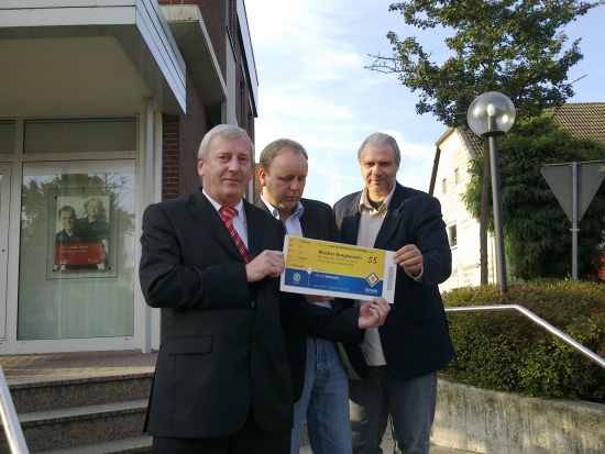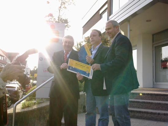 Da strahlt sogar die Sonne - Helgo, Holla und Uwe bei der Kartenübergabe