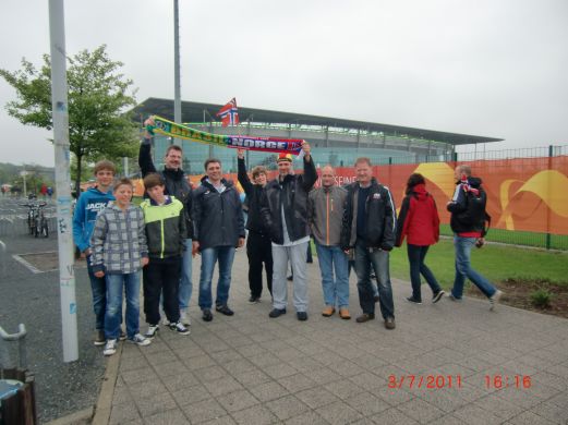 Organisator Andi Grigoleit hatte Anja und einige freiwillige mobilisiert. Marvin hatte die Norwegenflagge gehisst. Sonst nur neutrale Fans und Uwe im geliebten Nationaldress. Hatte er ein anderes Ziel ?