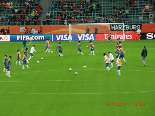 Brasilien beim Warmmachen kurz vor Spielbeginn. Die Stundenanzeige auf den Bildern ist übrigens falsch eingestellt.