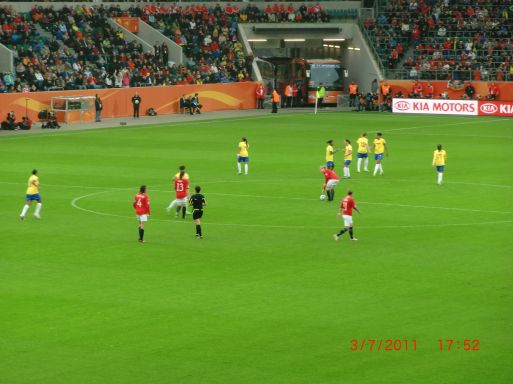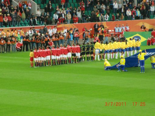 Zum Spiel: Es endete 3:0 für Brasilien und war zumindest in der ersten Hälfte eine absolute Enttäuschung. Einige Zuschauer der Vechelder Delegation mutmaßten sogar, die schlechteste 1. Hälfte bei einem Livespiel in ihrer Karriere gesehen zu haben. Aber es wurde deutlich besser und es gab einige spektakuläre Angriffe der Brasilianerinnen zu sehen. Norwegen enttäuschte auf ganzer Linie mit einem planlosen Gebolze aus der eigenen Hälfte. Schade, die neutralen Zuschauer hatten sicherlich etwas mehr Spannung erwartet.